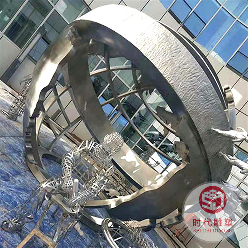 户外广场镜面鲸鱼圆环大型不锈钢雕塑定制园林铁艺景观月亮镂空球