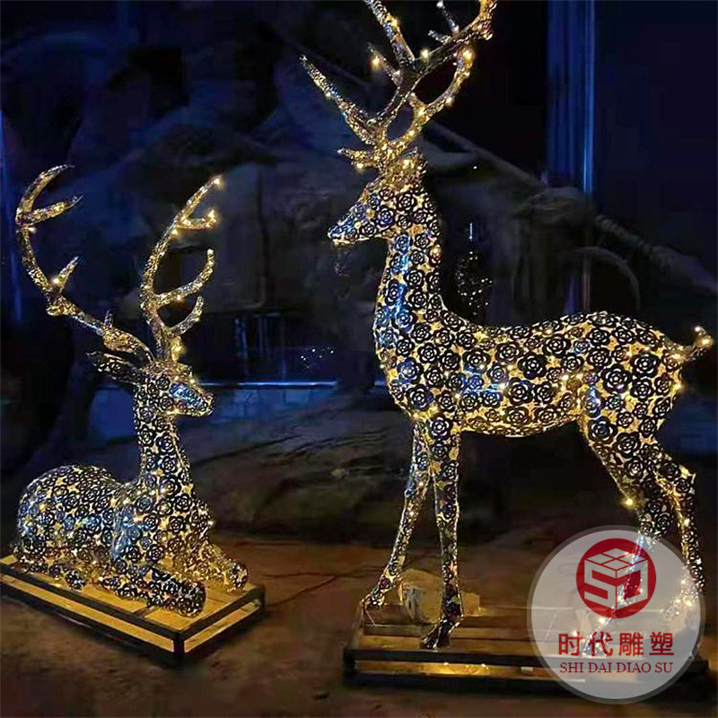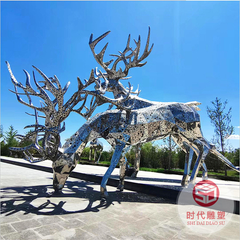 定制不锈钢雕塑几何镜面鹿镂空动物景观园林房地产售楼部公园摆件