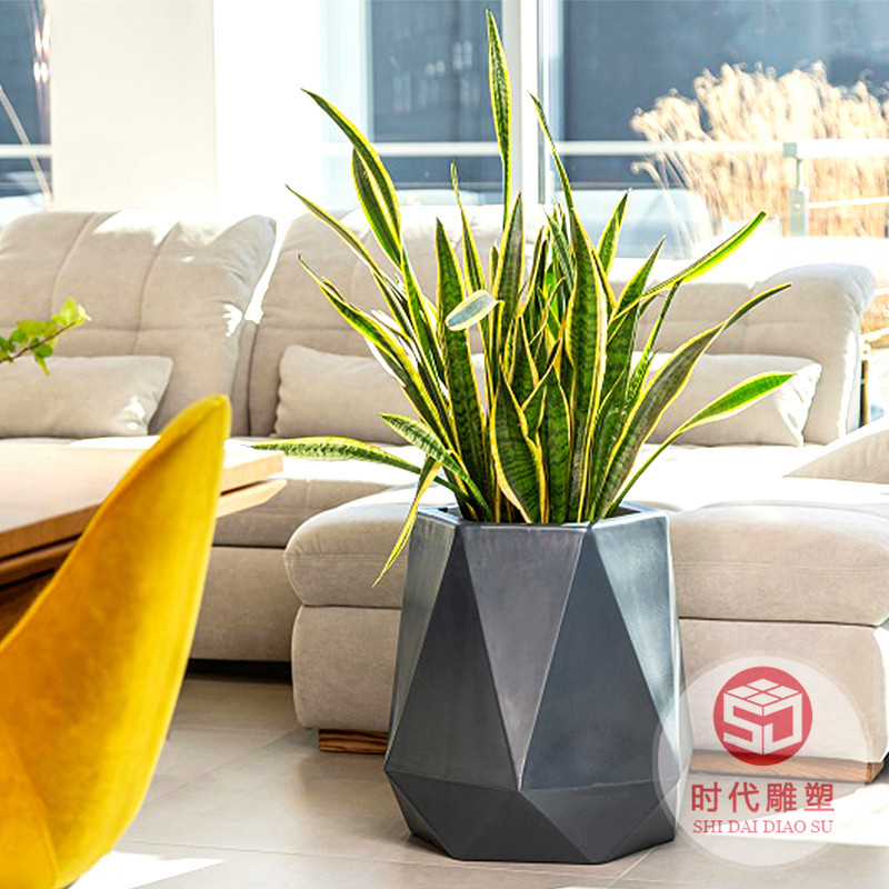 欧式玻璃钢折纸切面花盆商场酒店写字楼落地组合盆栽组合花瓶花器